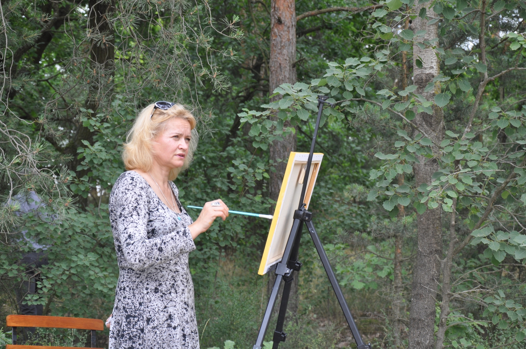 Tym razem udaliśmy się w przepiękny i cichy zakątek naszej gminy, zlokalizowany we wsi Celestyny. Po ciepłym przyjęciu przez pana sołtysa, Andrzeja Tomsa, uczestnicy pleneru zabrali się do wytężonej pracy, szukając najpierw miejsca i widoku, który mogliby uchwycić na swoich obrazach. Bogactwo fauny i flory Celestyn nie ułatwiało nam zadania.