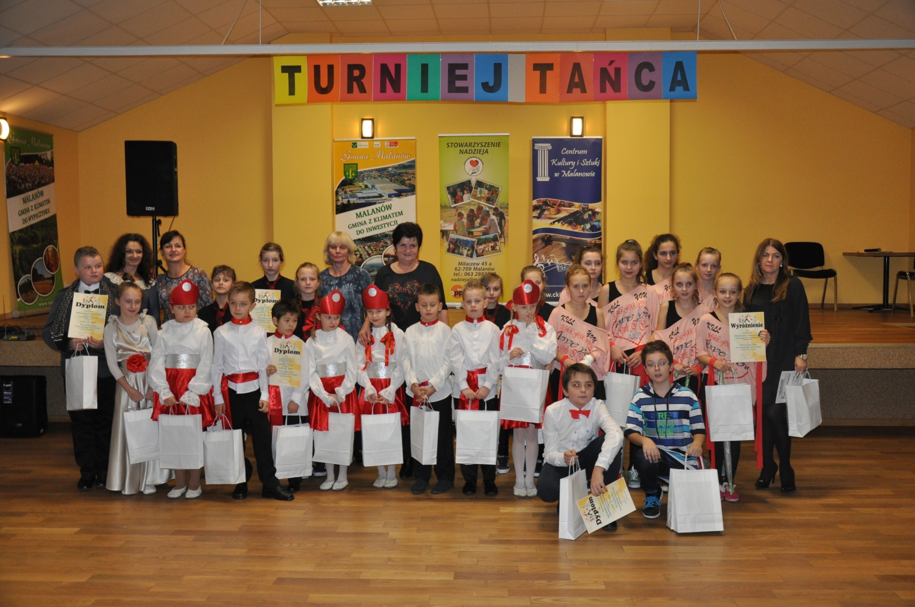 Niezapomniany walc z filmu „Noce i dnie”, żywiołowa „Kalinka”, piękne choreografie, taneczne rytmy, to wszystko można było zobaczyć podczas VII Turniej Tańca Towarzyskiego i Dowolnego, który odbył się w świetlicy wiejskiej w Malanowie 26.11.2014 r. Jury w składzie: Marzanna Szczap – przewodnicząca, Marzena Osińska, Alicja Maciejewska, Katarzyna Gorgolewska–Erkiet oraz Joanna Kalinowska oceniało występy dzieci w dwóch kategoriach: taniec dowolny oraz towarzyski. Do turniejowej rywalizacji przystąpiły dzieci reprezentujące szkołę podstawową z Brudzewa, Malanowa oraz Miłaczewa. Zanim jednak pierwsza para pojawiła się na parkiecie oficjalnego otwarcia konkursu dokonały Krystyna Sobczak – prezes Stowarzyszenia Nadzieja oraz Małgorzata Przygońska – dyrektor Centrum Kultury i Sztuki w Malanowie. Na scenie wystąpił również Jakub Białas wykonując piosenkę zespołu Pectus „Barcelona”. Po pięknie wykonanej piosence i brawach rozpoczęło się to na co wszyscy czekali. Dla podgrzania atmosfery i wprowadzenia w taneczne rytmy na parkiecie pojawiły się gościnnie absolwentki i uczennice Malanowskiego gimnazjum. VII turniej tańca rozpoczął się od rywalizacji w kategorii tańca towarzyskiego w którym wystąpiły 4 pary. Jako pierwsi swoje umiejętności taneczne zaprezentowali uczniowie ze szkoły podstawowej w Brudzewie, którzy zaprezentowali walc z filmu „Noce i dnie”. Oglądając ten taniec mogła przypomnieć się tylko słynna scena zbierania lilii wodnych przez ukochanego pani Barbary. Do rywalizacji w tej kategorii przystąpiły również dwie pary z SP Malanów oraz jedna z SP Miłaczew. Po ostatnim tańcu konkursowym na scenie wystąpiły się dziewczęta z zespołu tanecznego działającego przy Centrum Kultury i Sztuki w Malanowie pod kierunkiem Joanny Kalinowskiej. W drugiej części konkursu na parkiecie mogliśmy podziwiać grupy taneczne w tańcu towarzyskim. Do rywalizacji przystąpiły trzy zespoły reprezentujące podobnie jak w tańcu towarzyskim SP Brudzew, SP Malanów i SP Miłaczew. Oficjalnym zakończeniem zmagań tanecznych był ponowny występ zespołu tanecznego z Gimnazjum pod kierunkiem Katarzyny Tomczyk. W oczekiwaniu na ogłoszenie wyników organizatorzy przygotowali mały poczęstunek dla uczestników, którzy odpoczęli od tańca i nabrali energii. Po chwili niepewności jury ogłosiło wyczekiwany przez wszystkich werdykt.